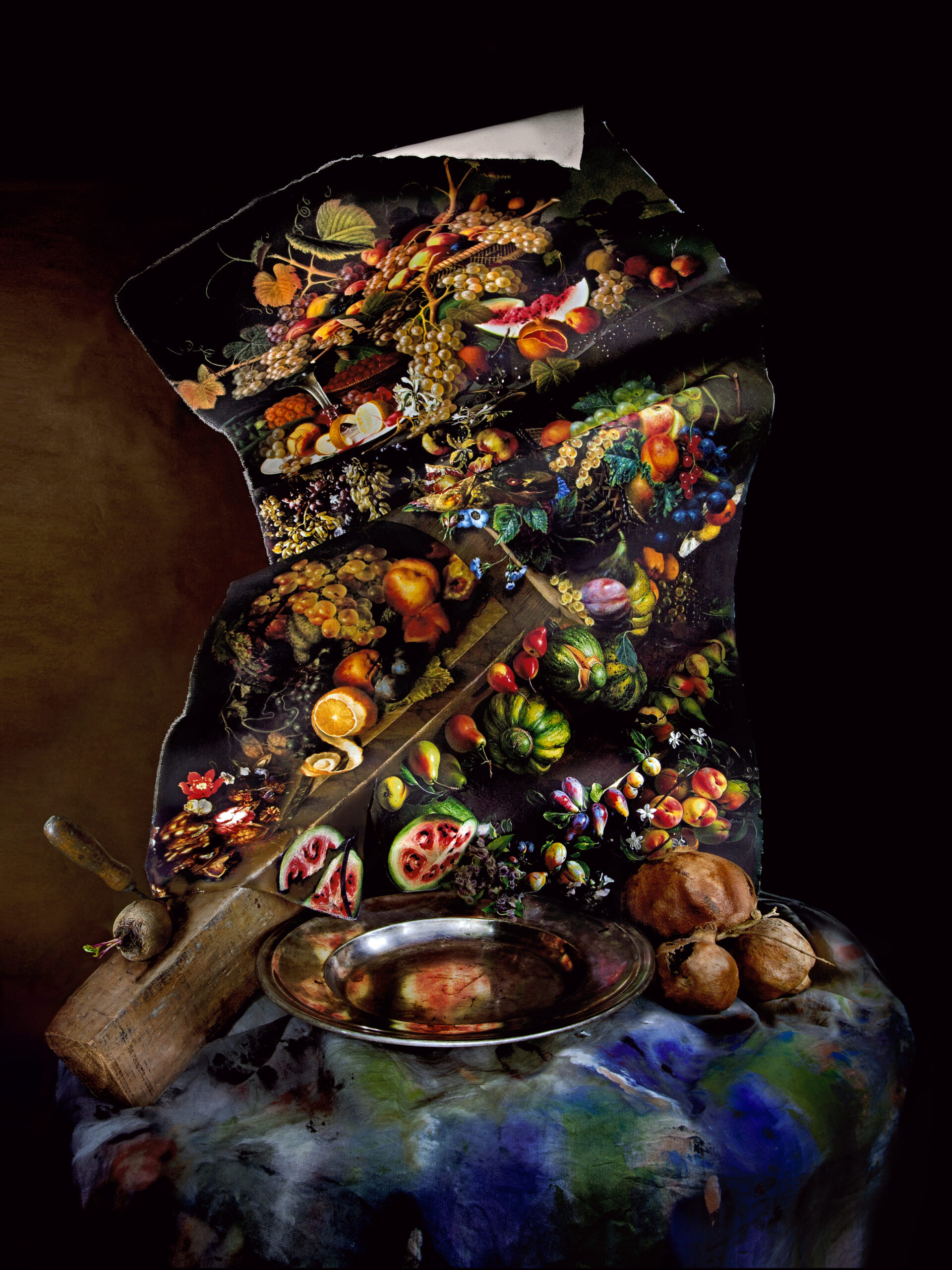 Mi obra figurativa es la construcción de una poética neobarroca, que intenta subvertir los códigos y convenciones del lenguaje fotográfico, al producir un desanclaje entre la luz y lo fotografiado, como consecuencia de la técnica utilizada. Esta técnica es una “foto performance lumínica”: En la oscuridad ilumino la escena manualmente, al mismo tiempo que la recorro, en tomas de larga duración, creando con la luz un espacio de subjetividad que imprime relatos en la imagen. El uso de la luz y el color tienen un sentido plástico y conceptual. Nada puede conocerse sin las luces y las sombras. Los contrastes entre los fulgurantes brillos y la oscuridad acentúan el misterio de lo humano, lo bello, y a veces lo terrible.
